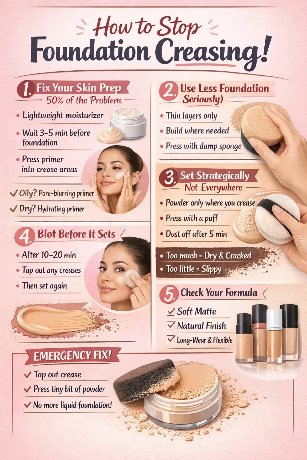 Let’s be honest: foundation doesn’t crease randomly. It creases because of excess product, poor prep, or texture imbalance.