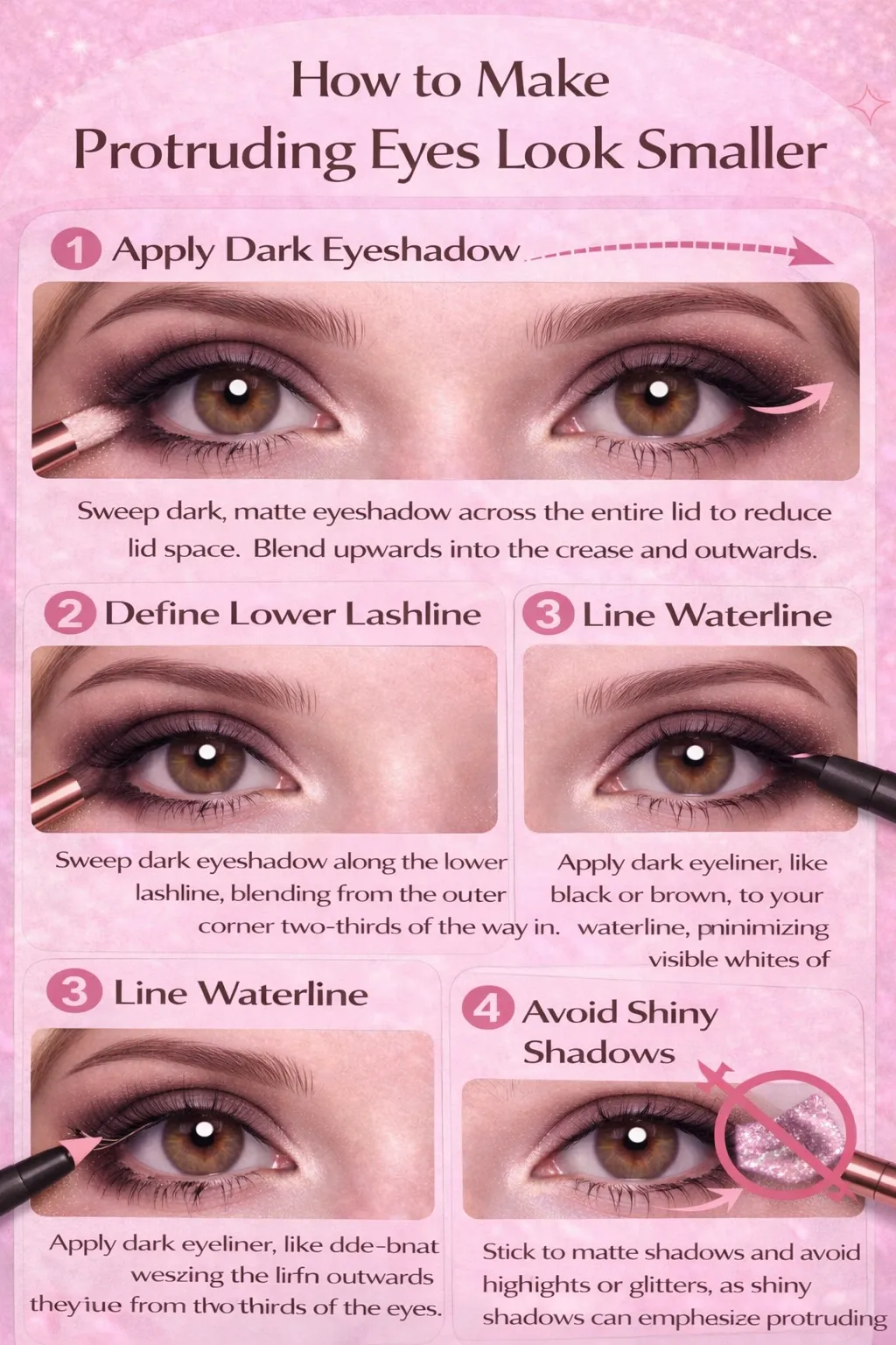 - Avoid too much shimmer on center lid.