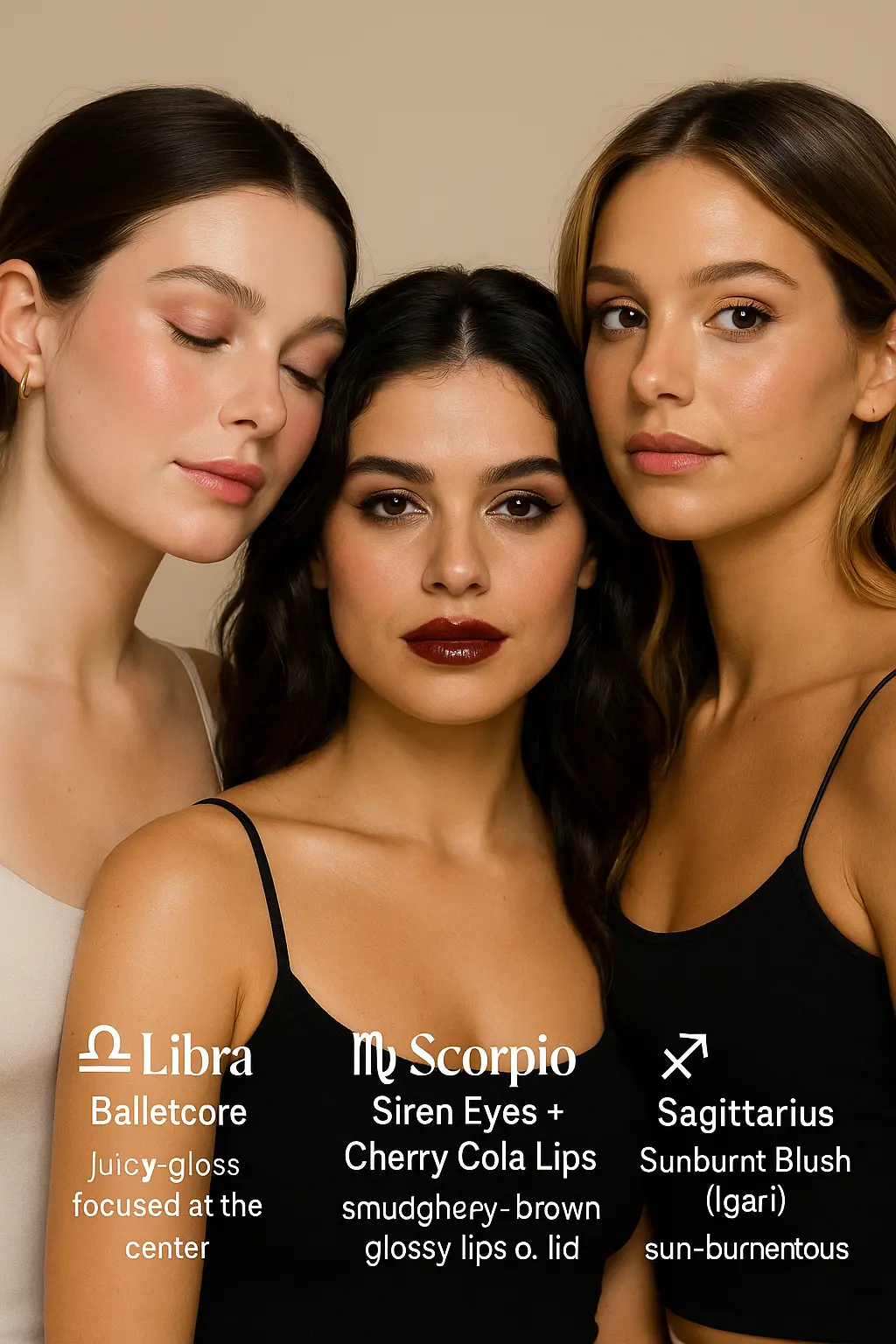 - Monochrome = instant cohesion: blush → lid → lip in the same family (Aries, Taurus, Cancer).